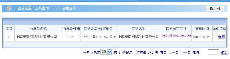 點擊后面的“詳細”,并且輸入驗證碼后,可以查詢某條具體記錄的詳細內容,如下圖